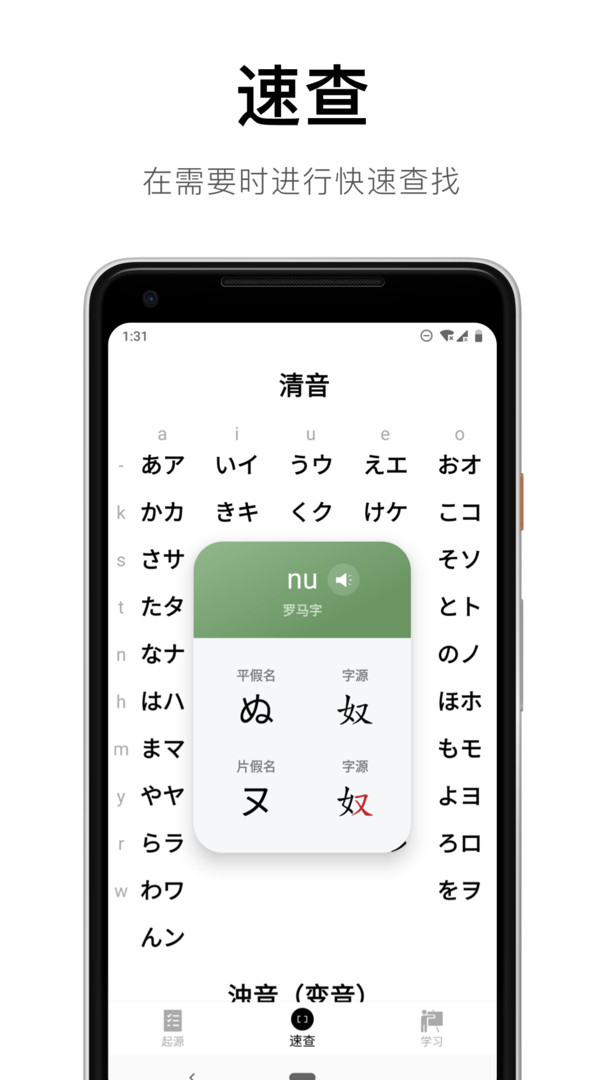 速查表可以在你需要的时候,快速找到那个你想了解的假名。