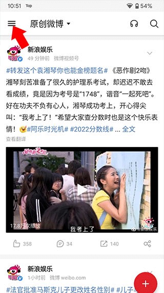 微博轻享版APP设置不让别人看我的微博方法1、首先我们打开微博轻享版,点击侧边栏。