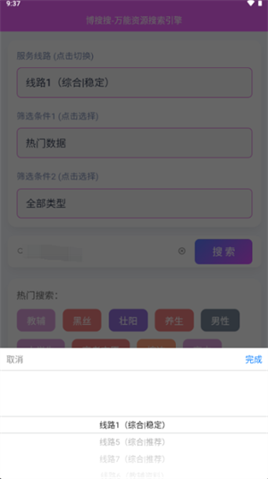 1.提供多条服务线路(如“综合限定”“综合推荐”),可自由切换,应对不同搜索场景,提升响应稳定性。