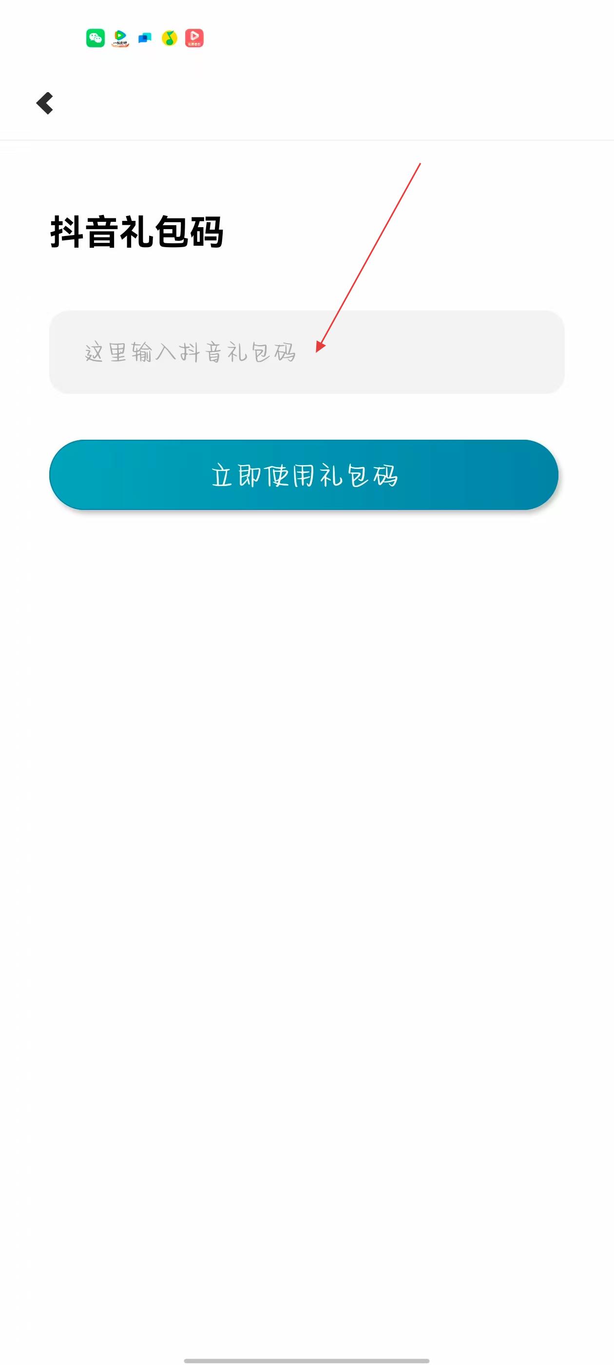 4、在抖音礼包码输入页面的输入框中,输入抖音邀请码,然后点击立即使用礼包码按钮即可。