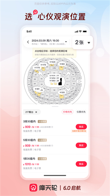 2、一手票源去除中间环节:直接整合演出主办与大型票务的票源,跳过中间流通环节,减少加价空间,让用户以更贴近源头的价格购买门票,提升购票性价比。