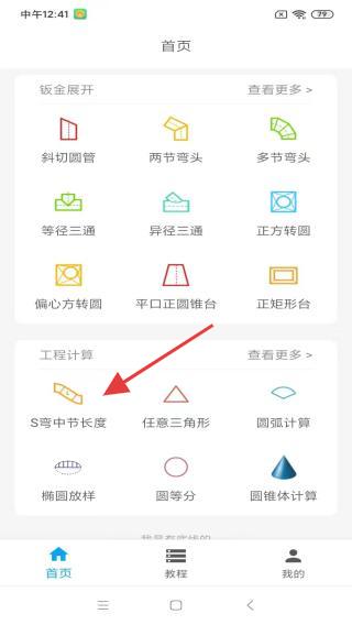 2、在首页内,向下滑动,找到并点击S弯中节长度的功能按钮。