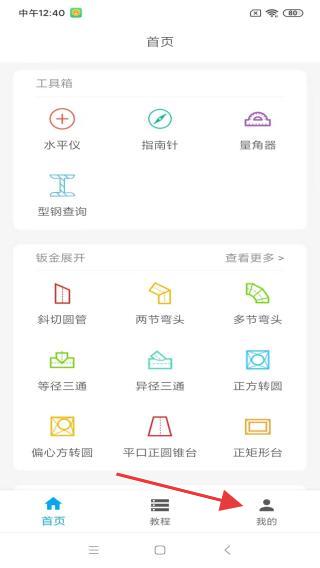 1、打开手机钣金展开APP,在首页内点击右下角我的图标。