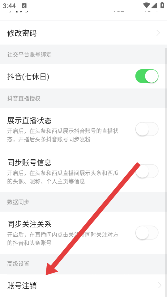 3、进入账号与安全的界面,我们这边继续点击账号注销的选项,按照提示完成账号的注销操作。