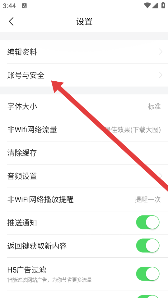 2、在自己的账号设置界面,我们需要点击选择账号与安全的选项,进入账号安全的设置页面。