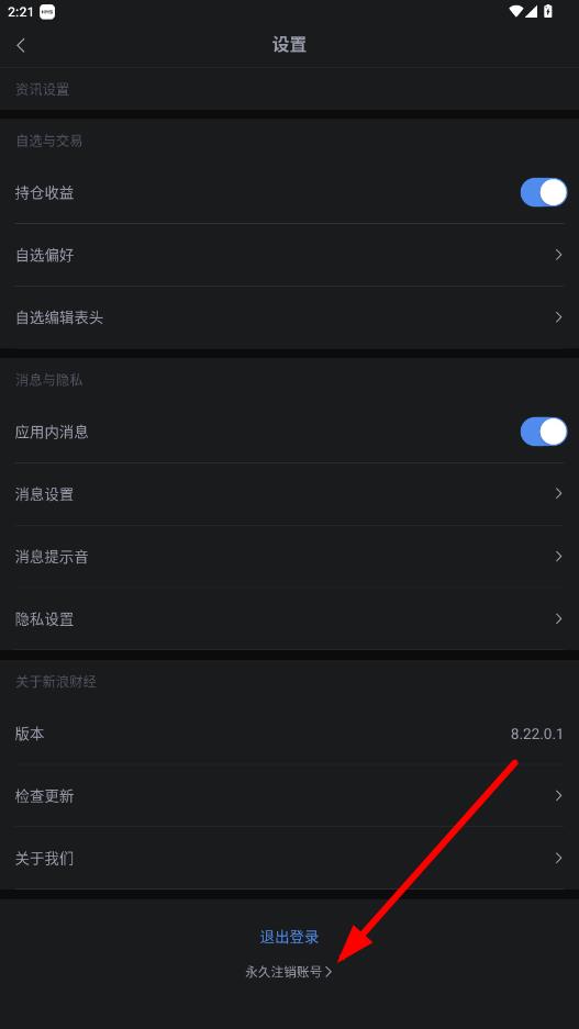 3、在设置页面中,滑动到下方找到并点击永久注销账号选项。