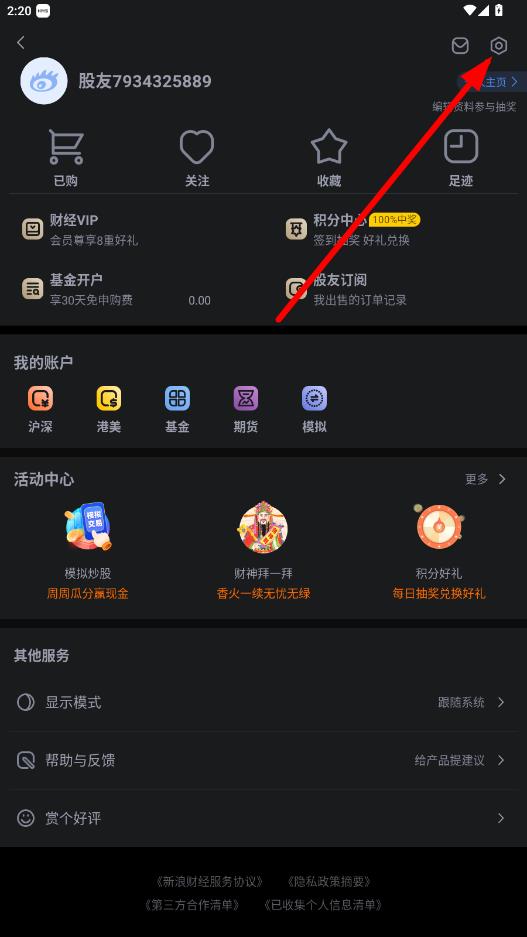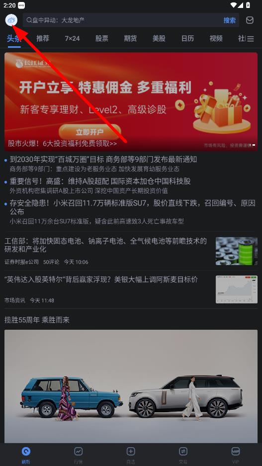 1、打开新浪财经app,点击左上角的个人头像图标。