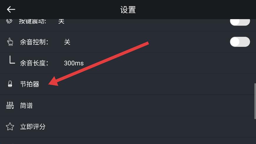 3、在设置选项中找到节拍器并点击,进入节拍设置页面。