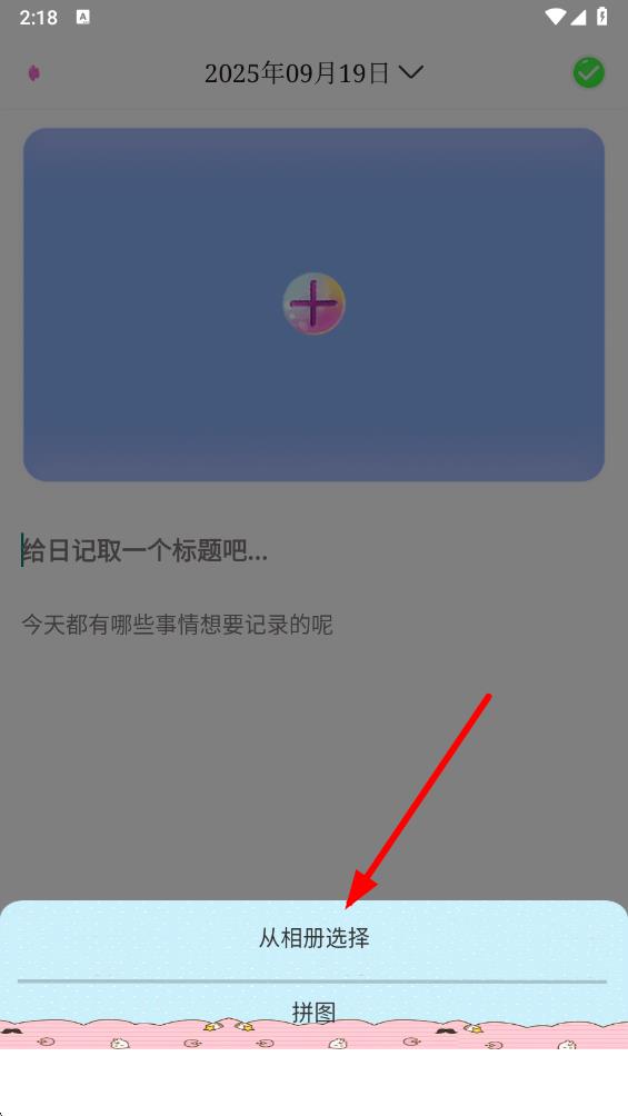 4、在手机相册里选择想要添加的图片,确认选择后,图片就会添加到日记中。