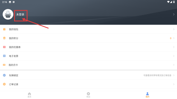 2、在个人中心,点击未登录区域,进入登录注册界面。