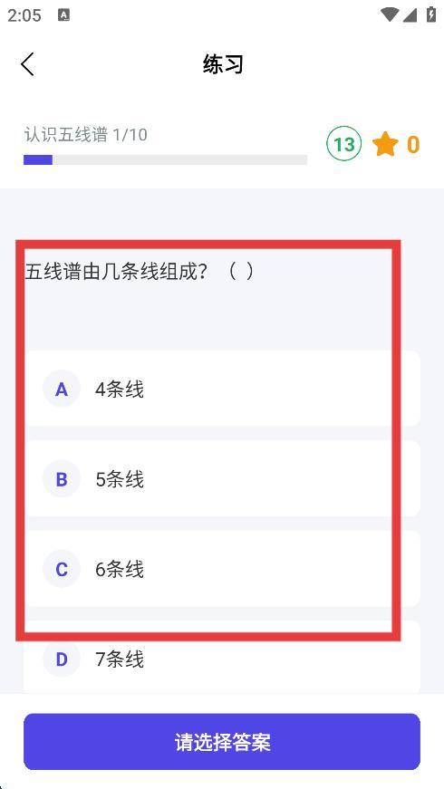 考虑到很多刚接触五线谱的用户遇到这么多钢琴键而不知所措的情况,我们针对性的将基础练习分为初级、中级、高级。在初级中我们将每个组别单独拎出来做练习,这样能让用户更好的练习和巩固。