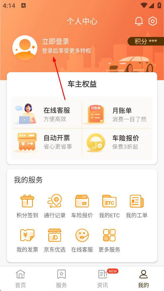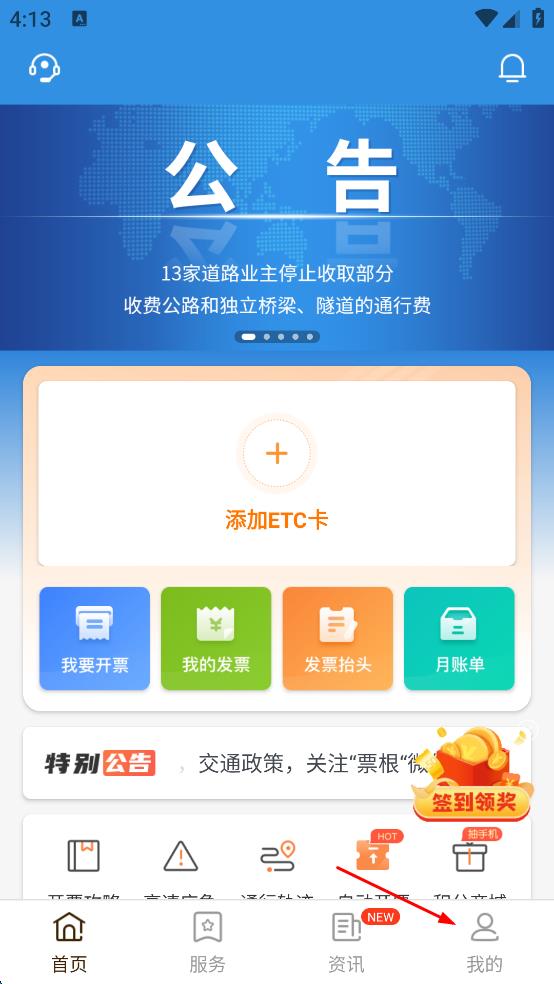 1、打开ETC相关APP,在主界面找到右下角“我的”选项并点击,进入个人中心页面。