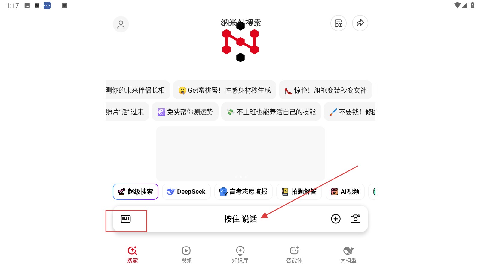 1、点击输入框左侧键盘图标,切换至文字输入模式,可手动输入问题,替代【按住说话】的语音输入。