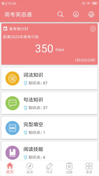 2、知识点:包含高考英语科目下的所有高考知识点详解,具体的有词法知识、句法知识、完型填空、阅读技能、书面表达等几个大的模块