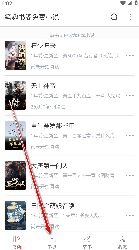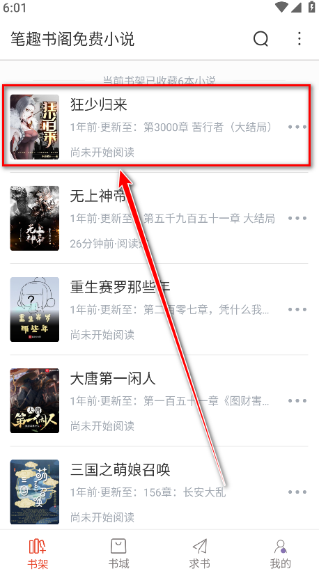 4.返回到首页的书架板块,即可看到刚刚的小说已经在书架最上方了。