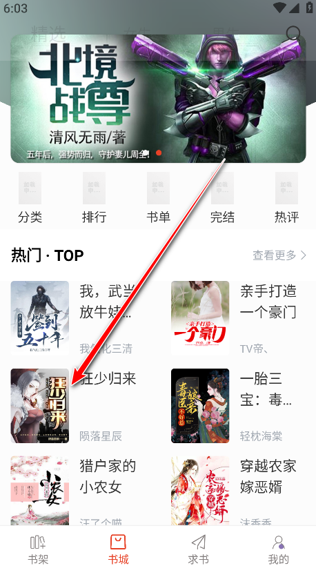 6.可以看到这一板块有很多分类详细的小说资源,大家想看哪个就直接点击哪个就好了哈。比如小编点击狂少归来。