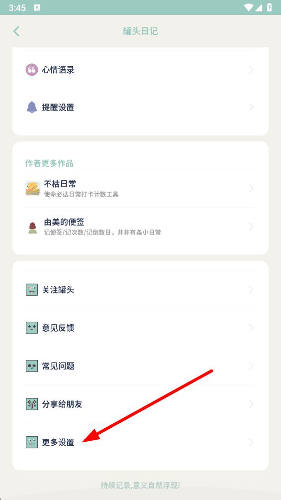 2、在进入的界面中,向下滑动找到并点击更多设置选项,进入设置页面。