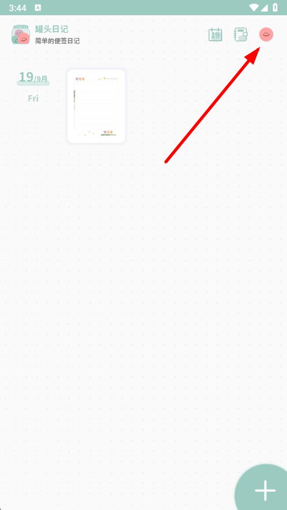 1、打开罐头日记app,点击主界面右上角的笑脸图标,进入相关设置界面。