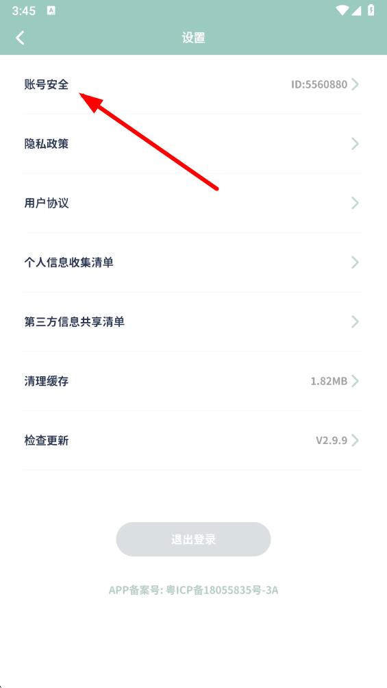 3、在设置页面里,点击账号安全选项,进入账号安全管理界面。