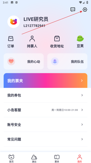 2、在个人中心页面,点击右上角的设置图标,进入设置界面。