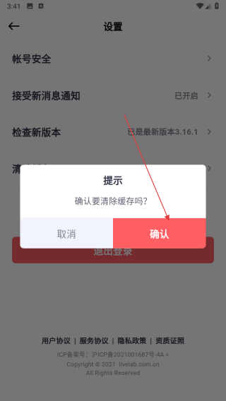 4、弹出提示框后,点击确认按钮,完成缓存清理。