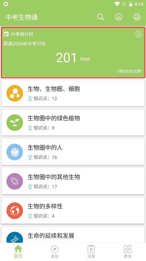 3、然后就会出现中考倒计时的时间;在下方会出现很多的知识点,用户都可以进行查看学习;