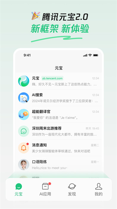 腾讯元宝ai软件是一款拥有各种先进ai功能的辅助软件,在日常的搜索以及写作等方面都能提高效率,同时整个软件还支持编辑文案以及翻译文案,帮助整个页面看起来更加的整齐,如果有需要翻译方面的需求,直接导入文件即可让ai协助操作,这里有着最基本的准确率,有需要的用户完全能直接来使用,不仅如此,目前这里的工具完全免费使用,无需大家付费来进行对话和创作,如果你也对ai非常的感兴趣,快来小编这里了解一下吧!