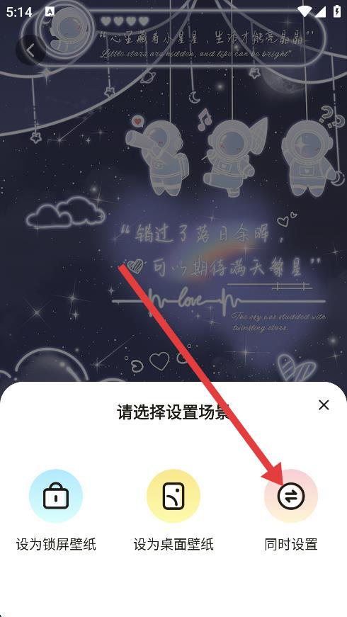 4、在弹出的请选择设置场景选项框中,根同时设置即可完成壁纸设置操作。