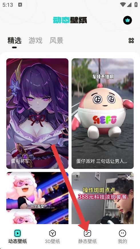 1、打开宇宙壁纸App,点击底部导航栏中的静态壁纸选项。
