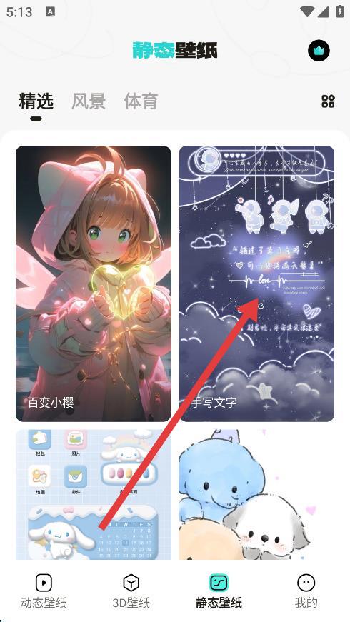 2、在静态壁纸页面,选择想要设置的壁纸,点击进入壁纸详情页面。