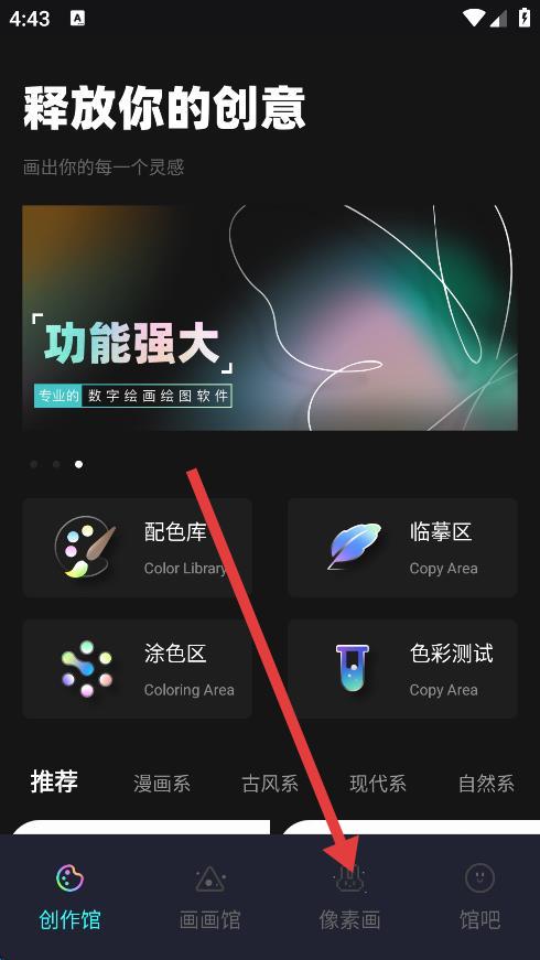 1、打开笔刷大师App,点击底部导航栏中的像素画选项。