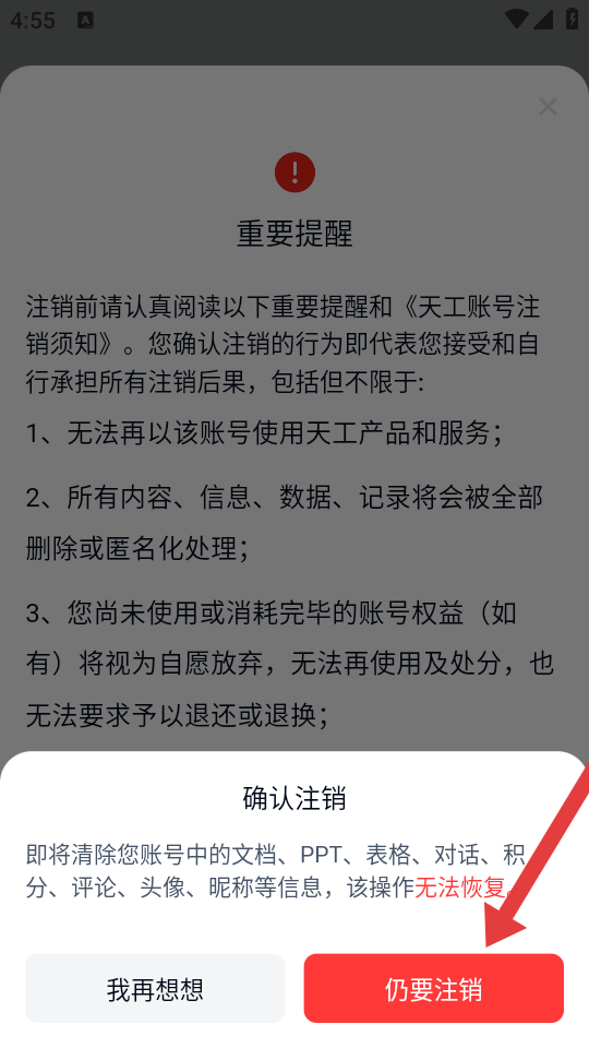 4、在确认注销界面点击仍要注销,即可完成账号注销的操作。