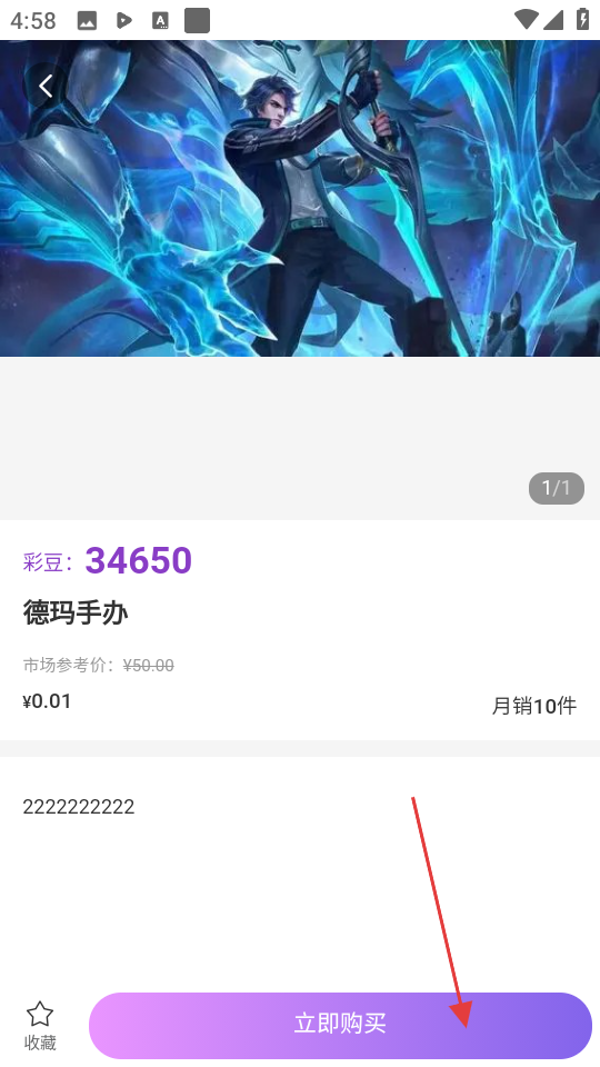 3、在商品详情页,点击立即购买按钮,进入购买选择页面。