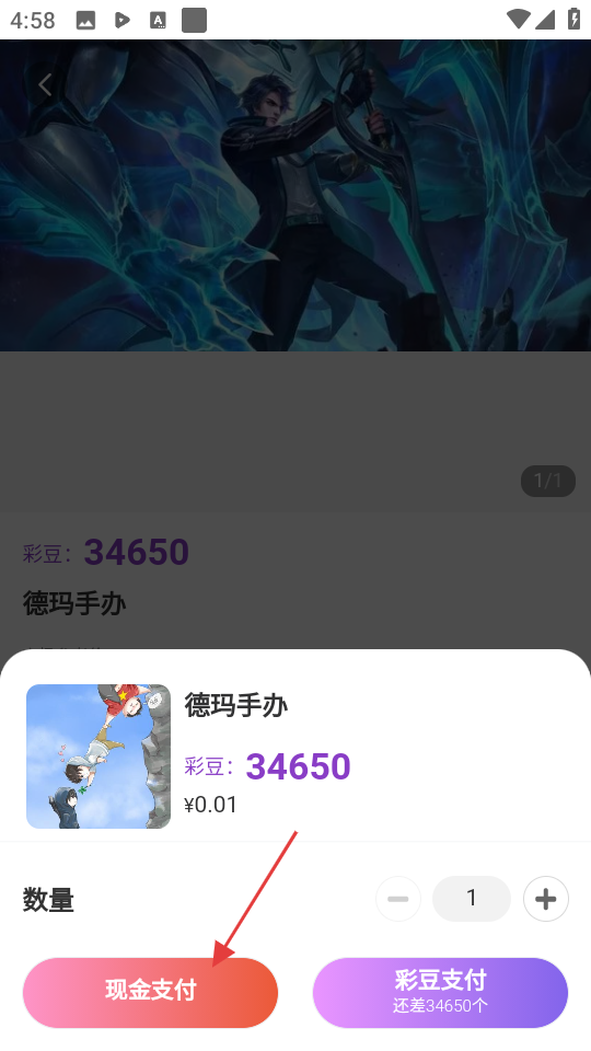 4、在购买选择页面,可选择现金支付方式进行购买。