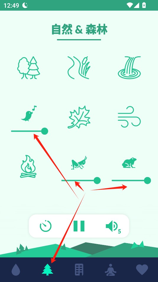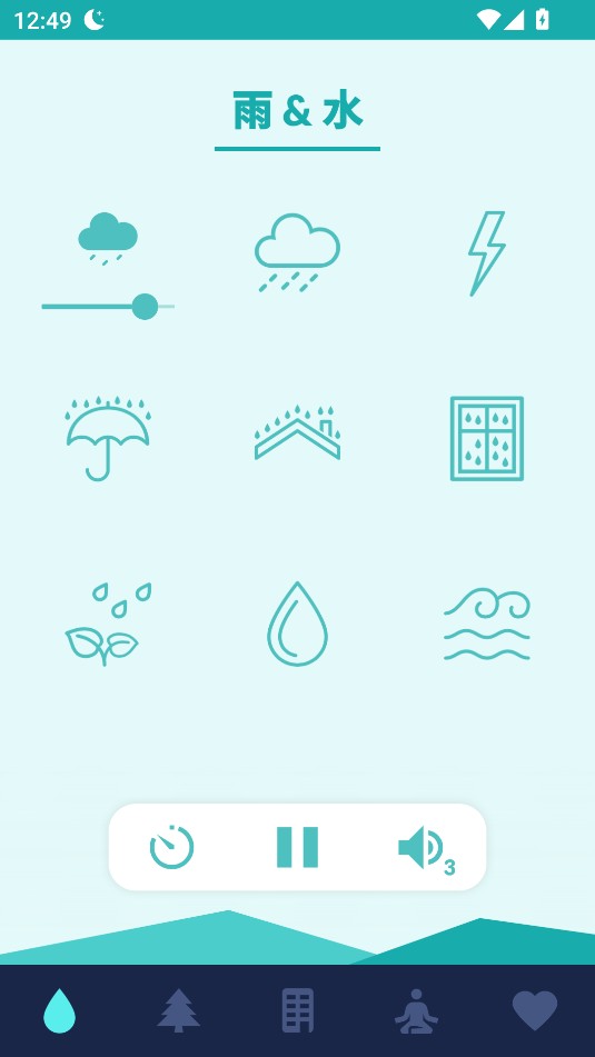 1. 自然的声音和音乐它提供了四大类声音雨水和水,自然和森林,城市和家庭,放松和冥想。它涵盖了海浪、雨滴、森林鸟鸣、城市白噪音、钢琴旋律等高清音效,为用户创造不同的沉浸式体验。