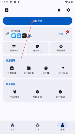 2、在个人中心页面,点击立即登录按钮,进入登录界面。