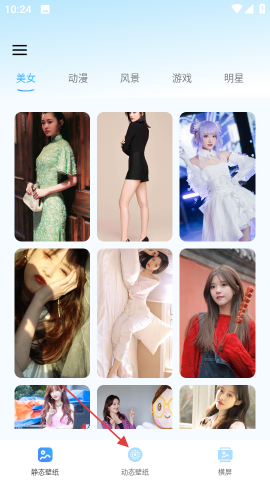 1、在静态壁纸页面,点击底部的动态壁纸按钮,进入动态壁纸页面。