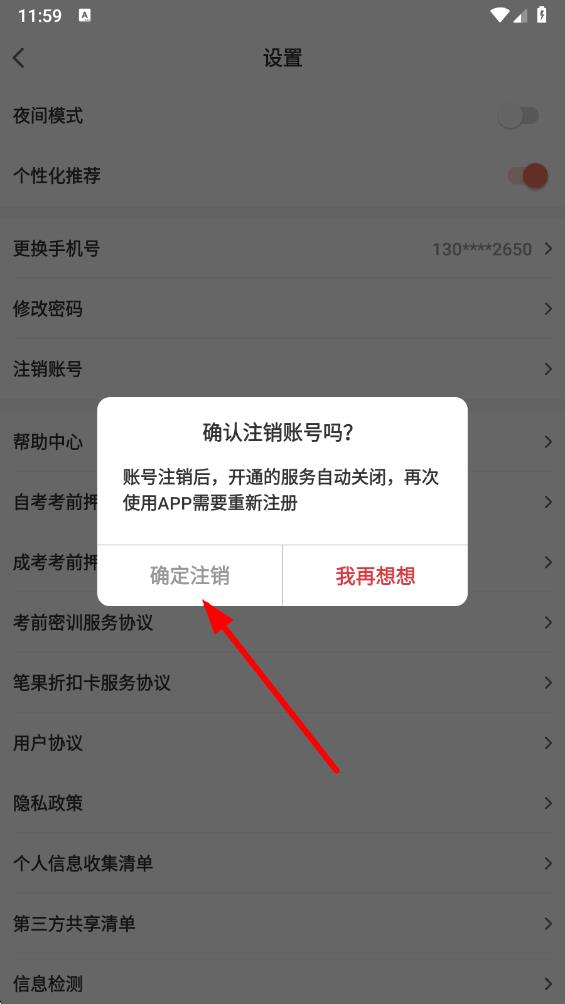 3、在设置页面里,找到并点击注销账号选项。