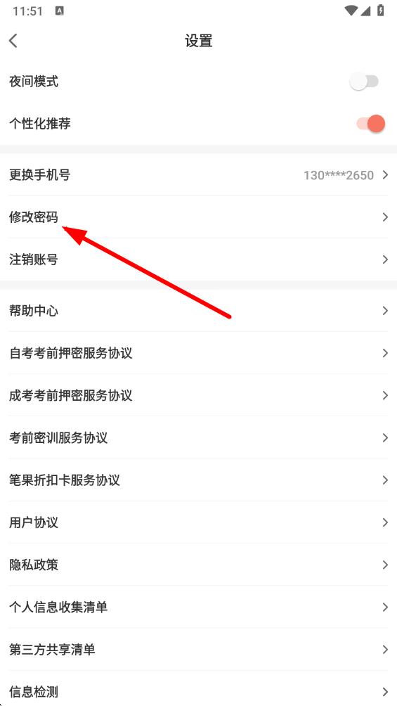 3、在设置页面中,找到并点击修改密码选项,进入设置密码界面。