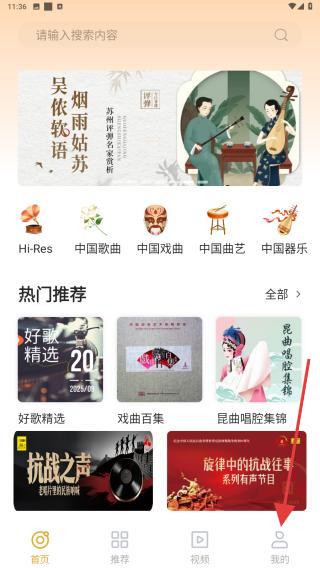 1、启动中国音乐APP,在首页点击右下角我的图标。