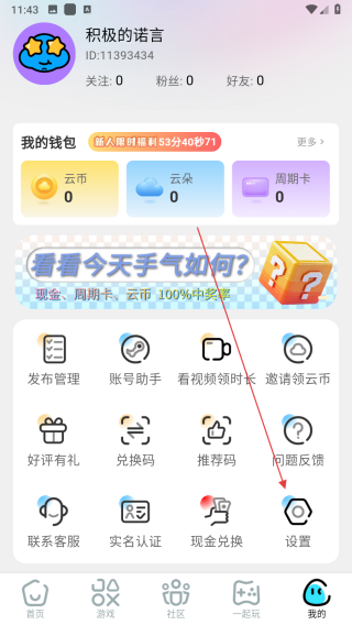 2、在个人中心页面里,找到设置图标并点击,进入设置界面。