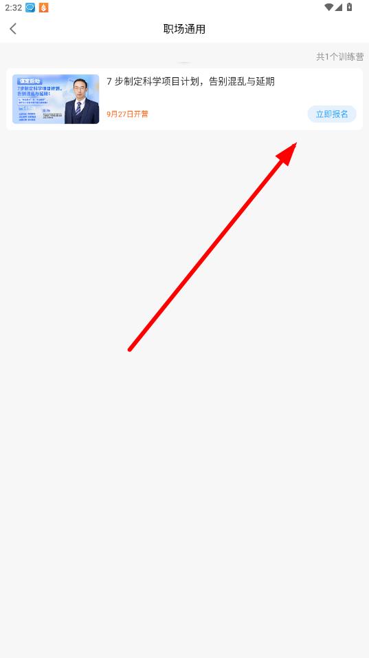 3、在分类页面中,找到想参加的具体训练营课程,点击课程右侧的立即报名按钮。