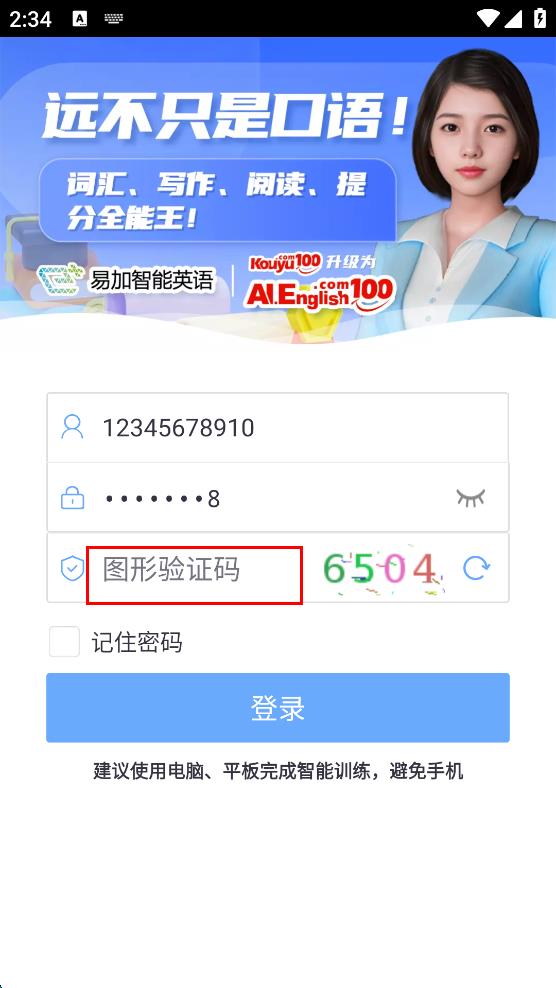 4、若需要下次快速登录,可勾选“记住密码”,最后点击“登录”,即可完成易加智能英语的登录。