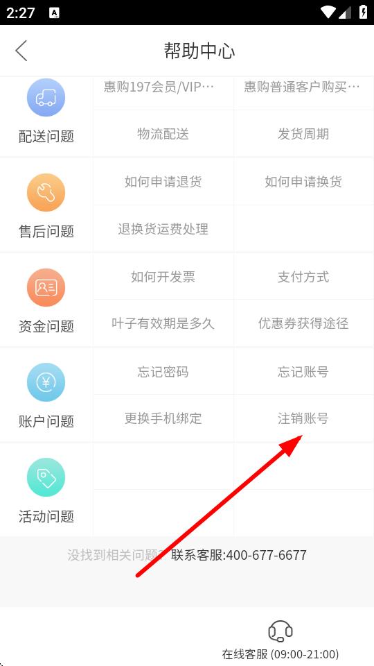 4、在帮助中心页面,找到账户问题板块,点击注销账号选项,按照后续提示操作即可完成账号注销。