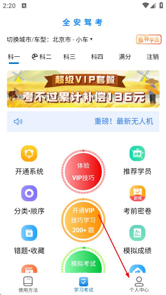 1、打开全安驾考APP,在主界面点击右下个人中心选项,进入个人中心页面。