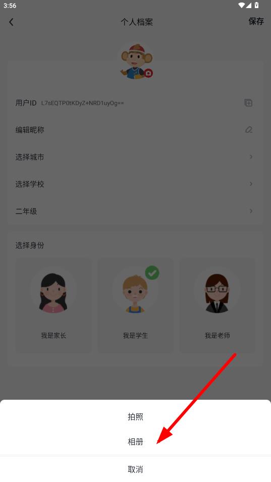 4、在弹出的选项中,点击相册,从相册里选择你想要设置为头像的图片,确认选择后即可更换头像。