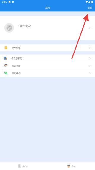 1、打开校园安心付APP,在首页内点击右下角我的图标。
