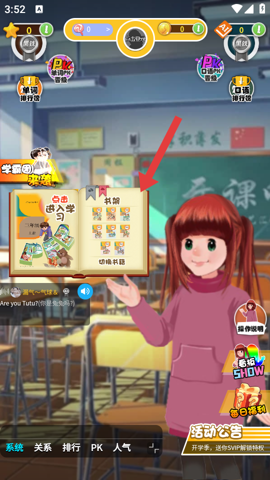 1、在主界面点击书架,进入书籍选择页面,可以查看英语教材。