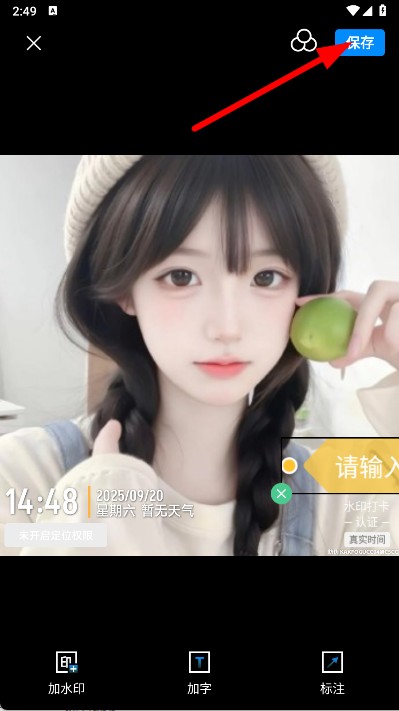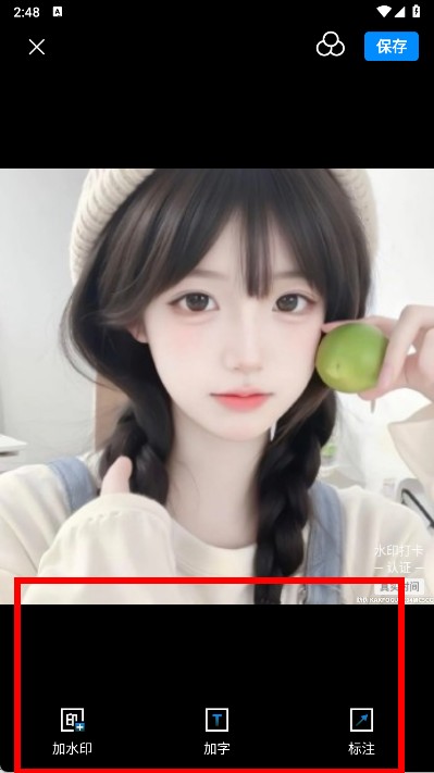 3、在照片编辑页面,可进行加水印、加字、标注等操作。