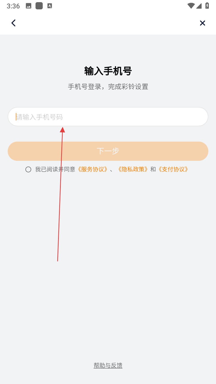 4、点击设彩铃后,会跳转到输入手机号的页面,在请输入手机号码的输入框中填写自己的手机号即可。